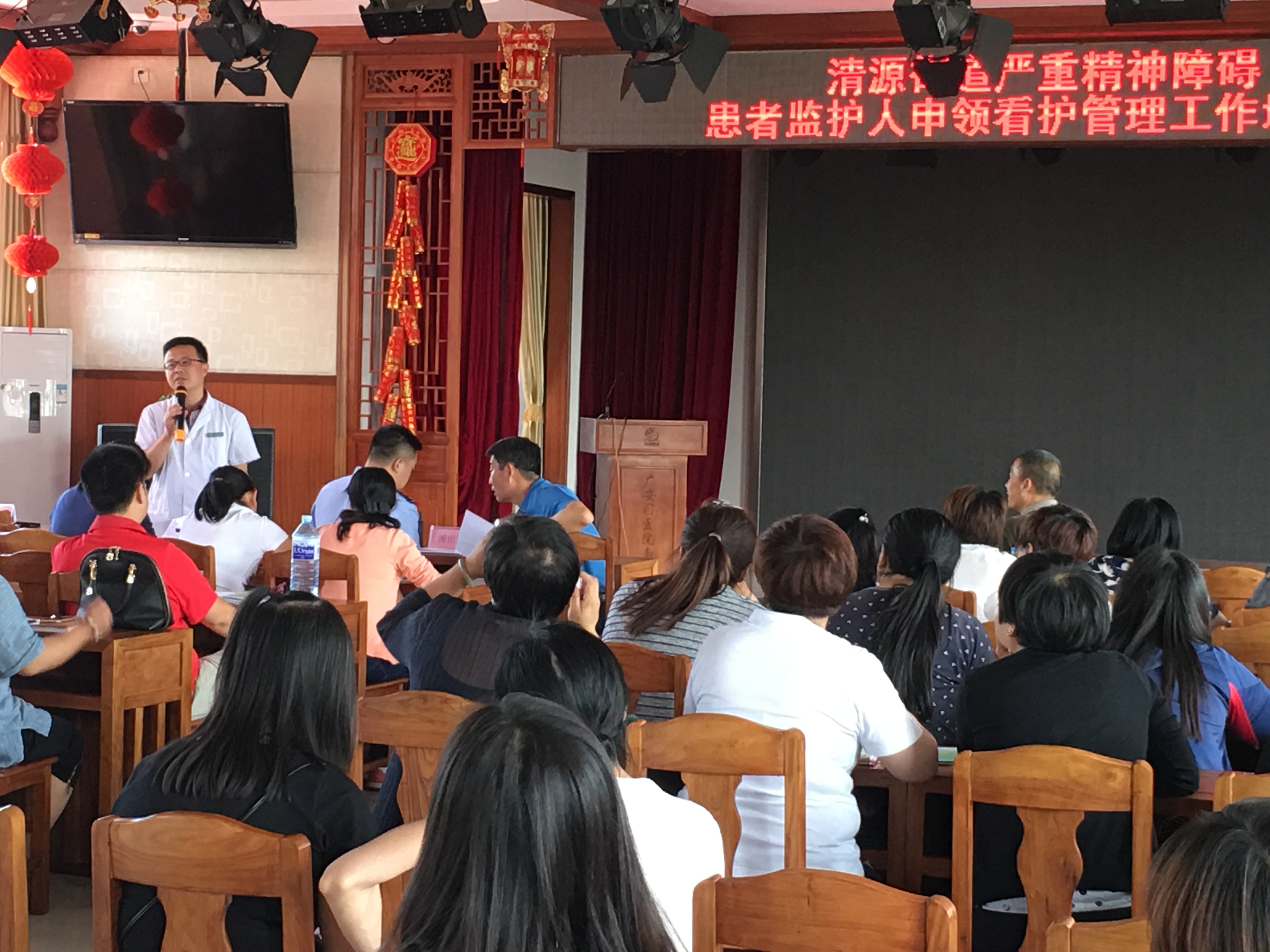 为进一步加强清源街道辖区内严重精神障碍患者的管理,保证精神病人的安全,切实履行监督监护人的责任,保障辖区内的社会稳定,2016年5月26日,清源街道在广安门医院南区6号楼五楼多功能厅组织召开了“严重精神障碍患者监护人培训会”。清源社区卫生服务中心主任、清源派出所所长、综合治理办公室主任、居民事务科科长、各社区主任、公共卫生专干及残联专干共计66人参加培训会。